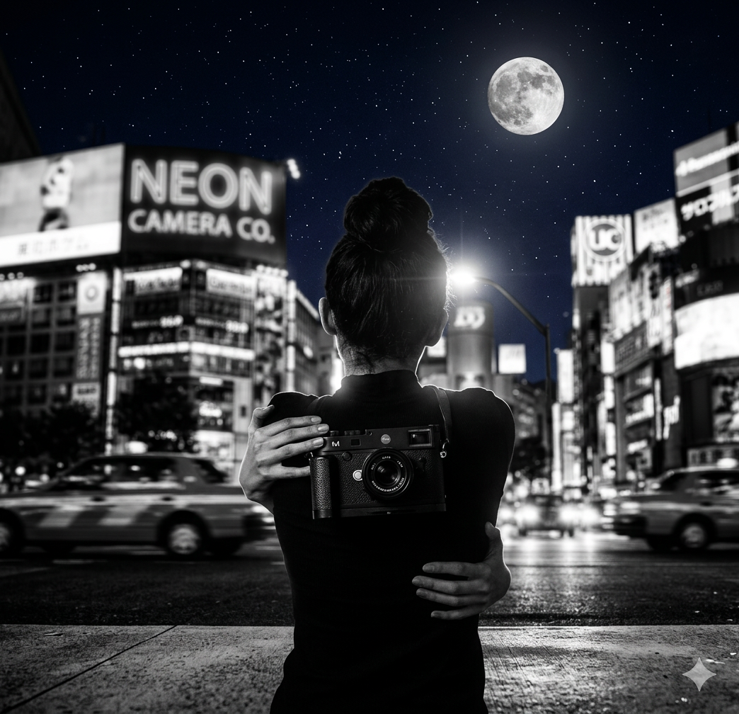 Black and white photograph of a person from behind, hugging themselves in a gesture of self-compassion